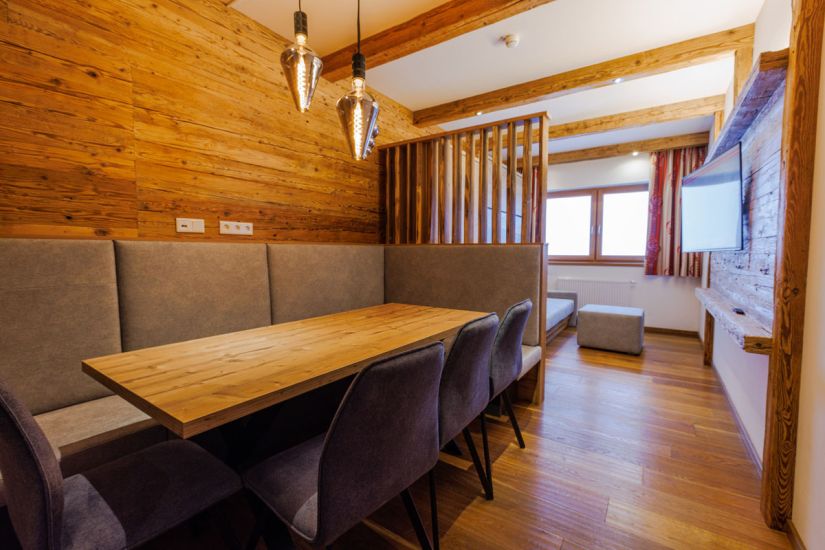 Dank der Lage im Untergeschoss haben Sie aus Ihrem Appartement einen Zugang ins Freie und direkt auf die Piste von Saalbach-Hinterglemm. Das Frühstücksbuffet kann separat zur Verpflegung dazu gebucht werden, der Preis hierbei beträgt € 17,00 pro Frühstück.